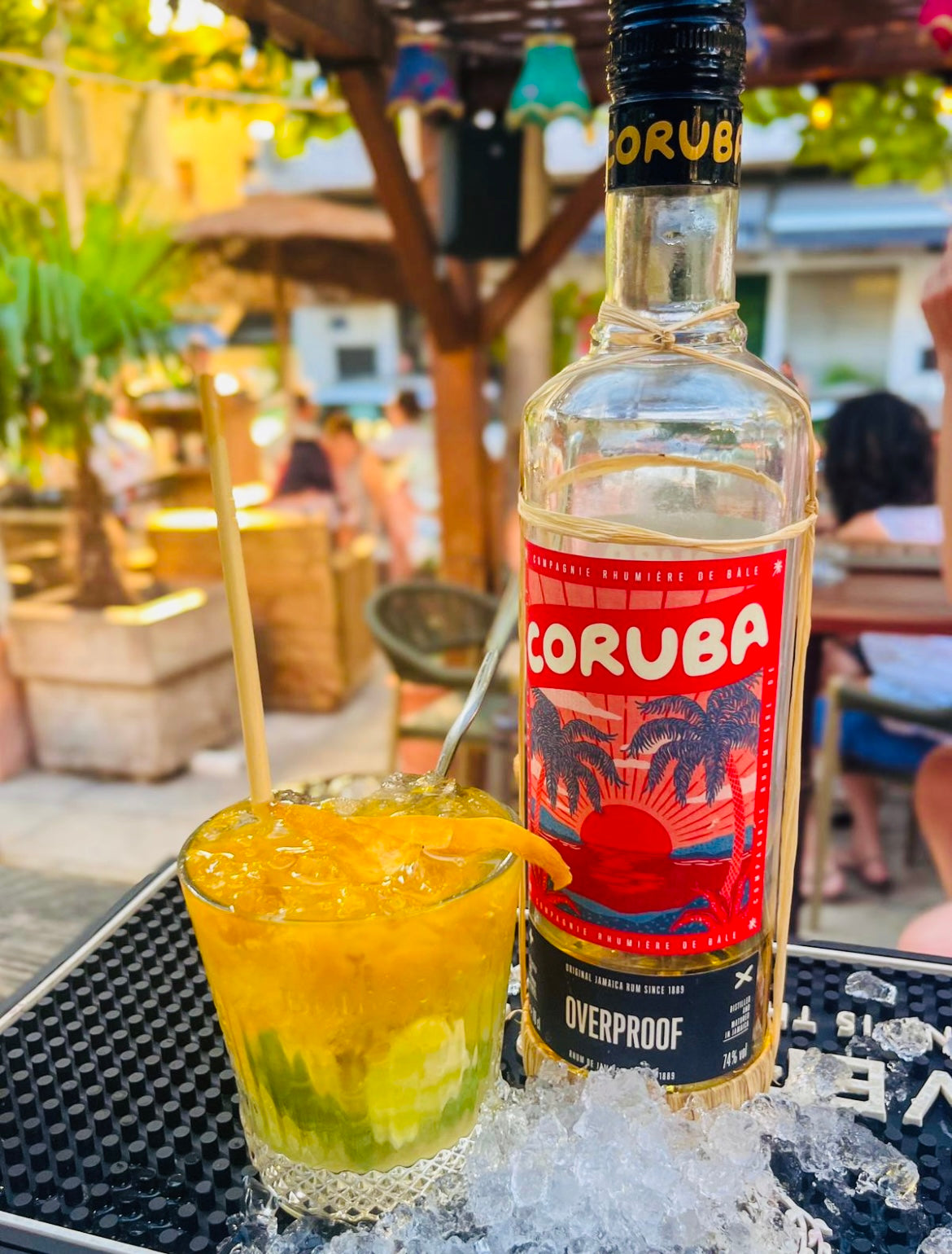 Rhum blanc 4cl, Coruba 1cl, sucre liquide 2cl, jus de mangue 4cl, 5 dash de vanille