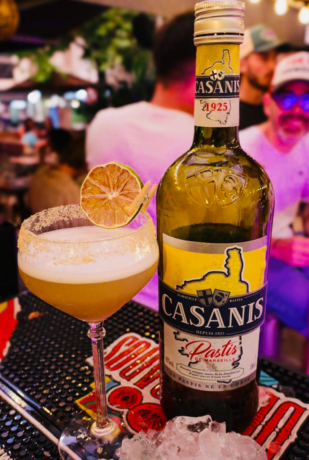 Casanis 2cl, Jus de citron 6cl ,Sirop d’orgeat 2cl,1 mesure de cassonade